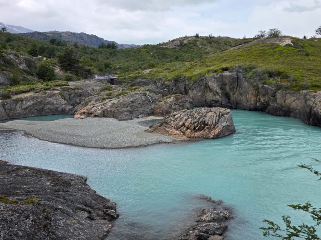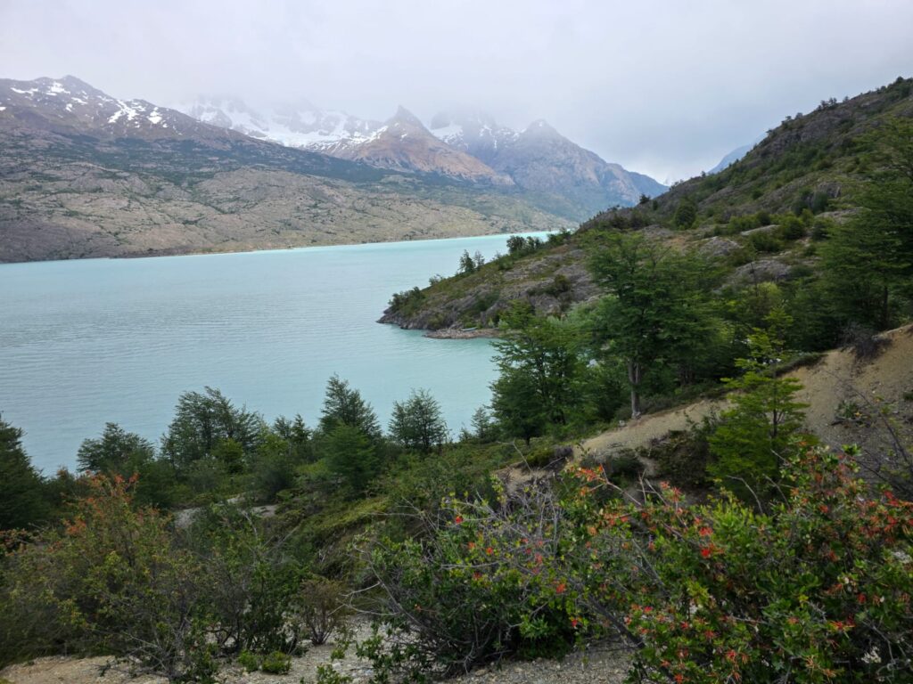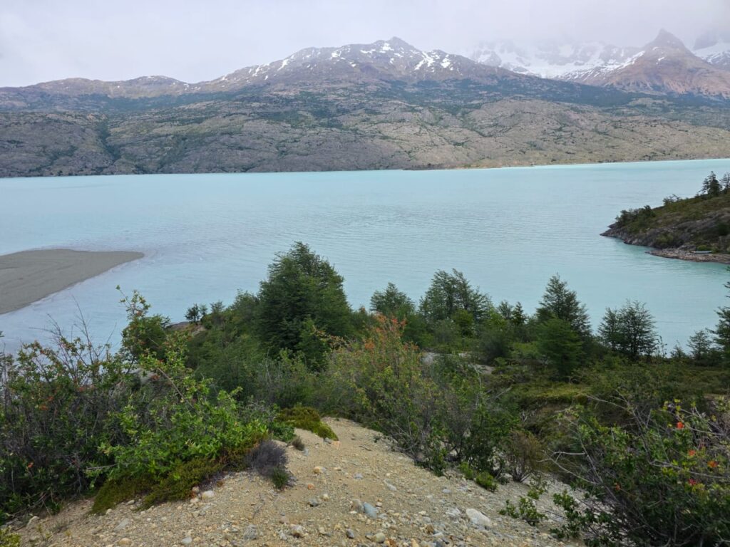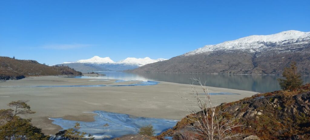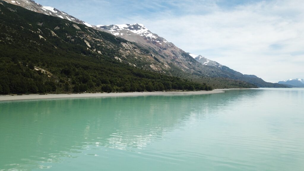 It has shoreline on Lake O’Higgins, lagoons, and rivers within its boundaries, and includes registered water rights (10 liters per second).