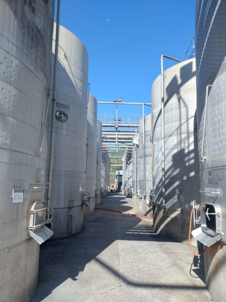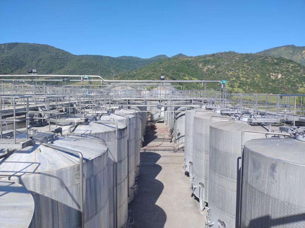 • Winemaking room with a 100% stainless steel tank, with a total capacity of 9,052,000 liters (6 tanks of 5,000 liters each, 1 tank of 7,500 liters each, 10 tanks of 10,000 liters each, 6 tanks of 20,000 liters each, 24 tanks of 25,000 liters each, 10 tanks of 30,000 liters each, 58 tanks of 50,000 liters each, 1 tank of 55,000 liters, 2 tanks of 75,000 liters each, 8 tanks of 80,000 liters each, 22 tanks of 100,000 liters each, 5 tanks of 150,000 liters each and 4 tanks of 300,000 liters each)